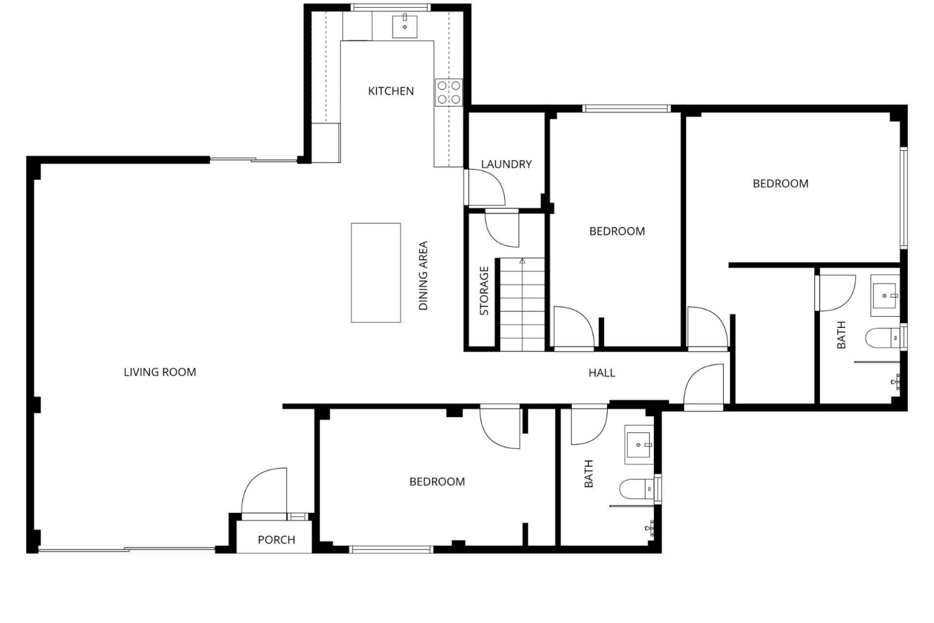Upon entering the villa, you are greeted by a large open-plan living area with a kitchen and wide windows that fill the space with natural light. On the ground floor, there are three bedrooms and two bathrooms: two bedrooms sharing a bathroom accessible from the hallway, and a double bedroom with its own dressing room and private bathroom.