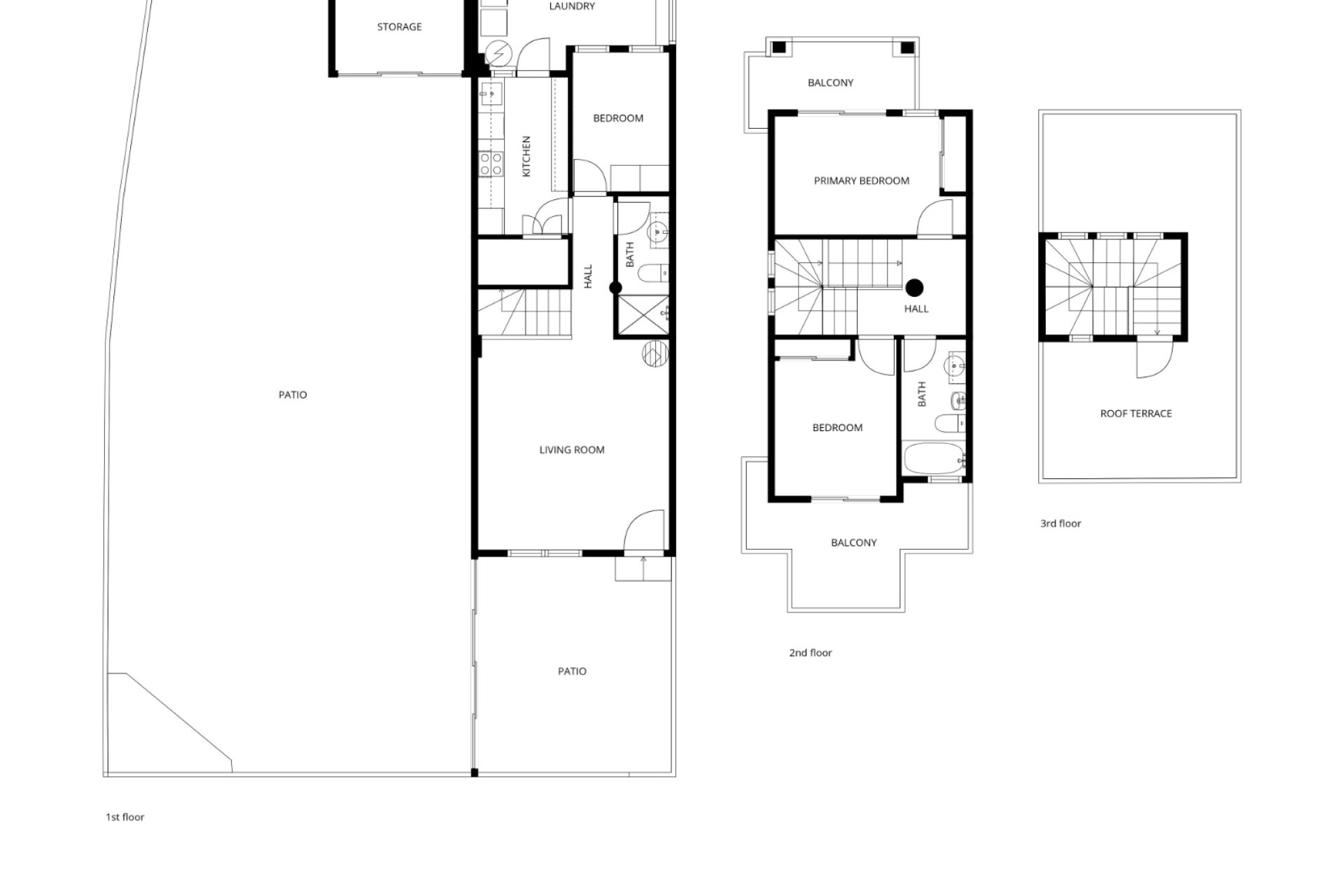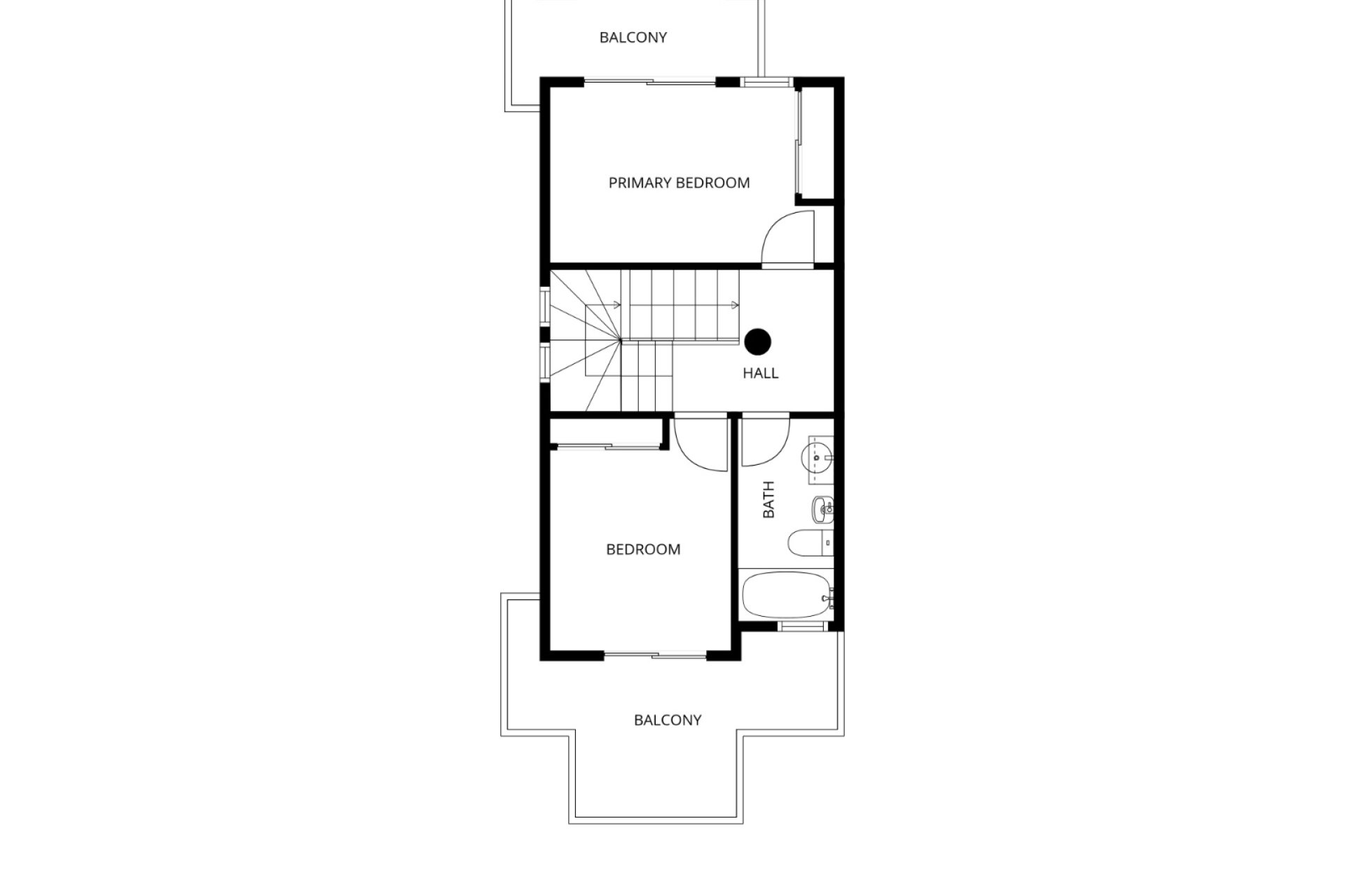 Pierwsze piętro: dwie przestronne sypialnie, obie z własnymi balkonami, plus druga łazienka.